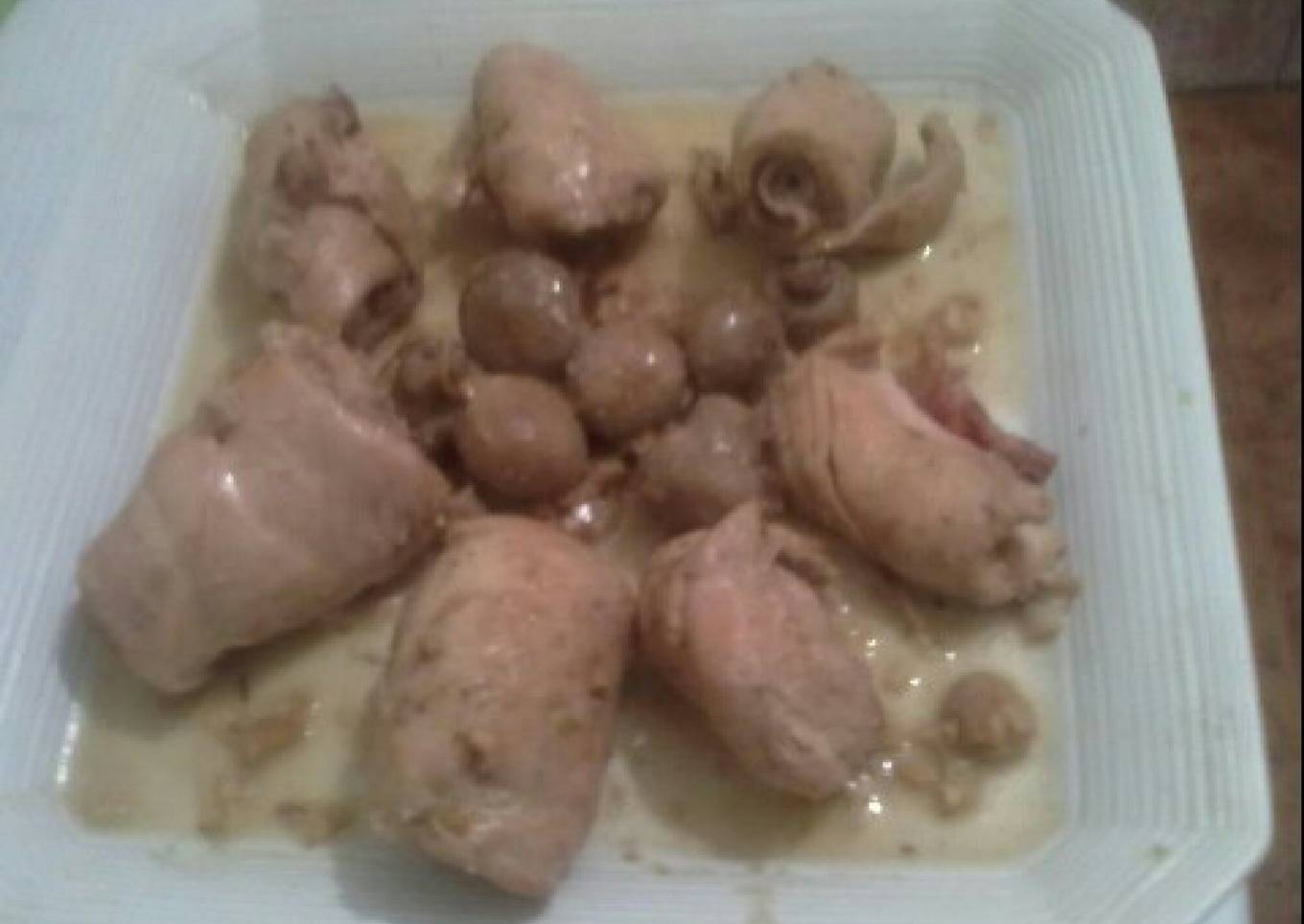 Instructions to make to make Rollito de pechuga con beicon y champiñones y almendras