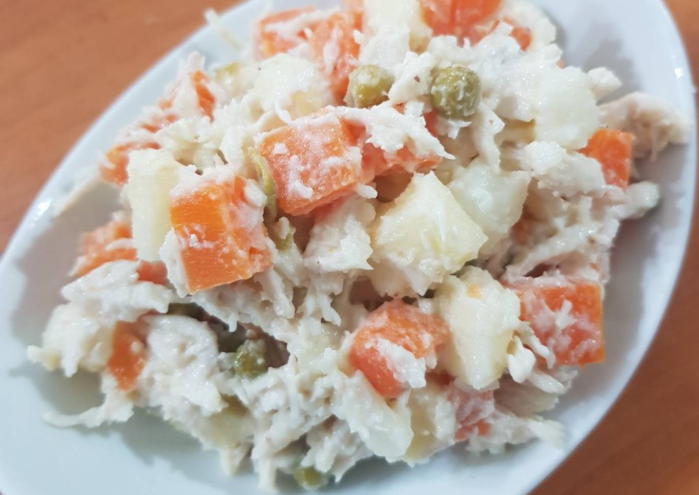 - Por último agregar la manzana en cuadritos, al gusto, en menos cantidad que las papas y zanahoria y poner a enfriar. Listo para servir!