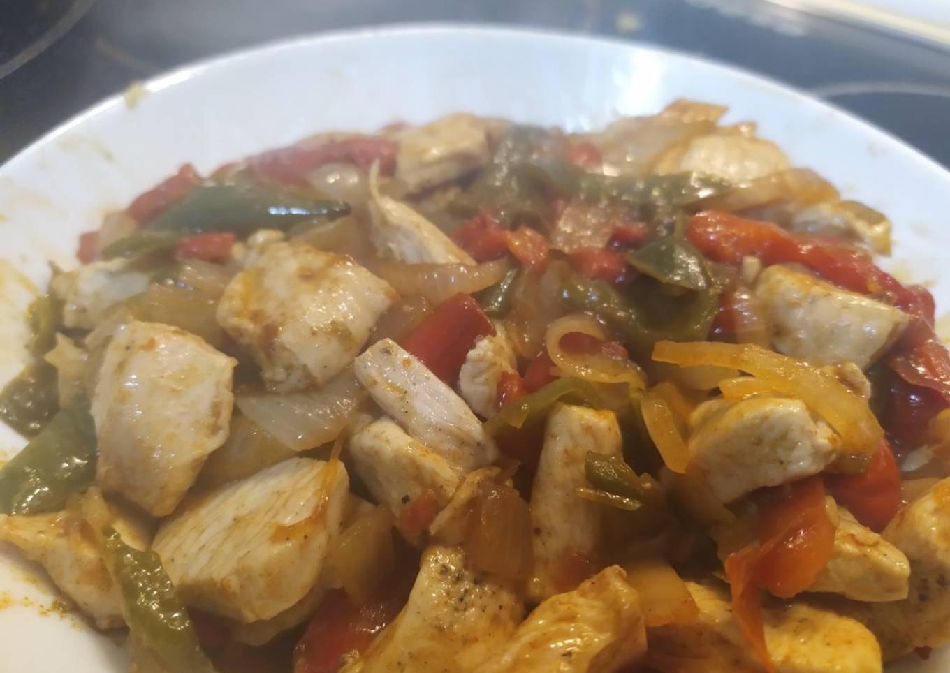 Fajitas de pollo y pimiento, picantes