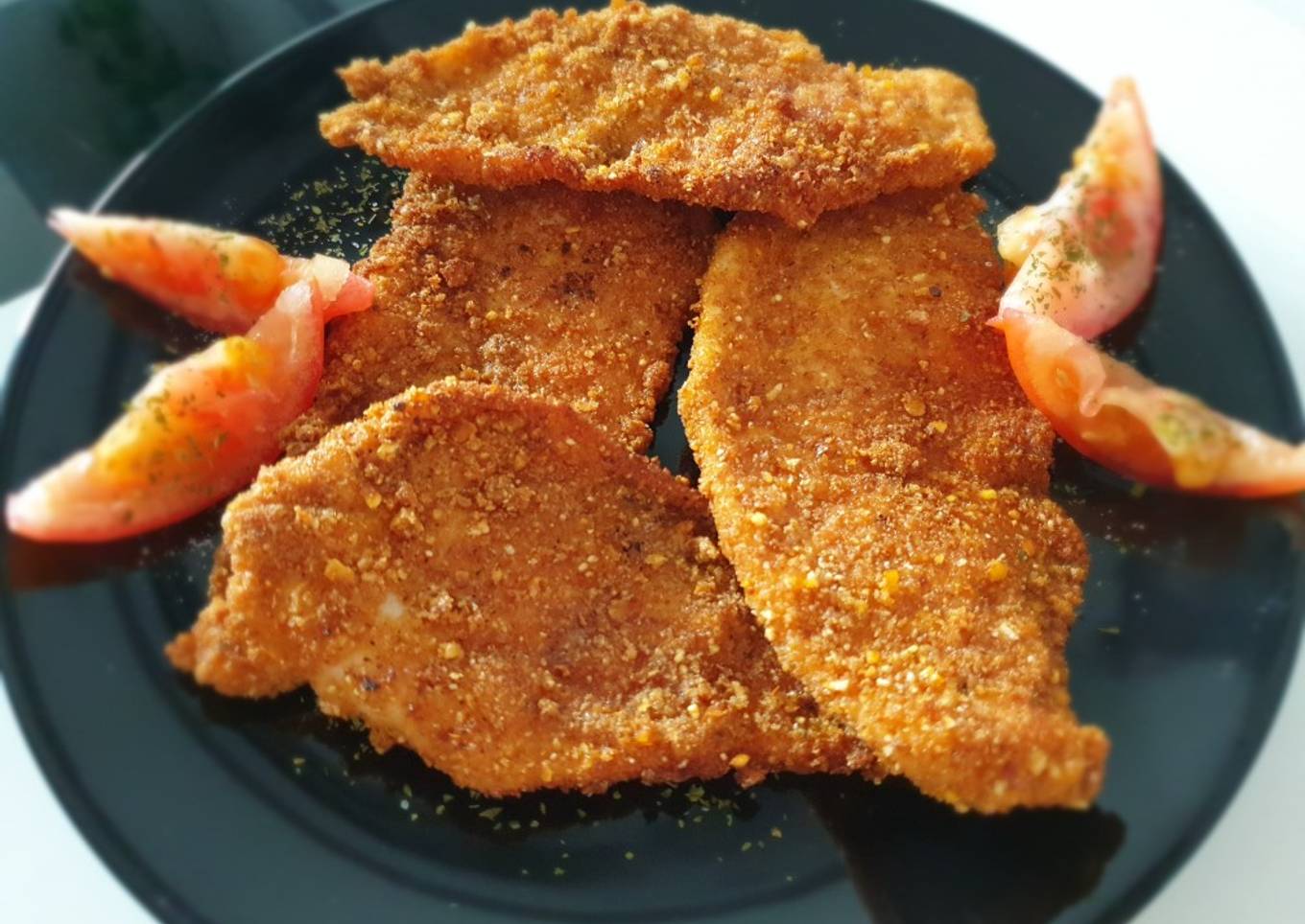 - Escurrir el exceso de huevo de los filetes y pasarlos por la mezcla de los kikos y el pan