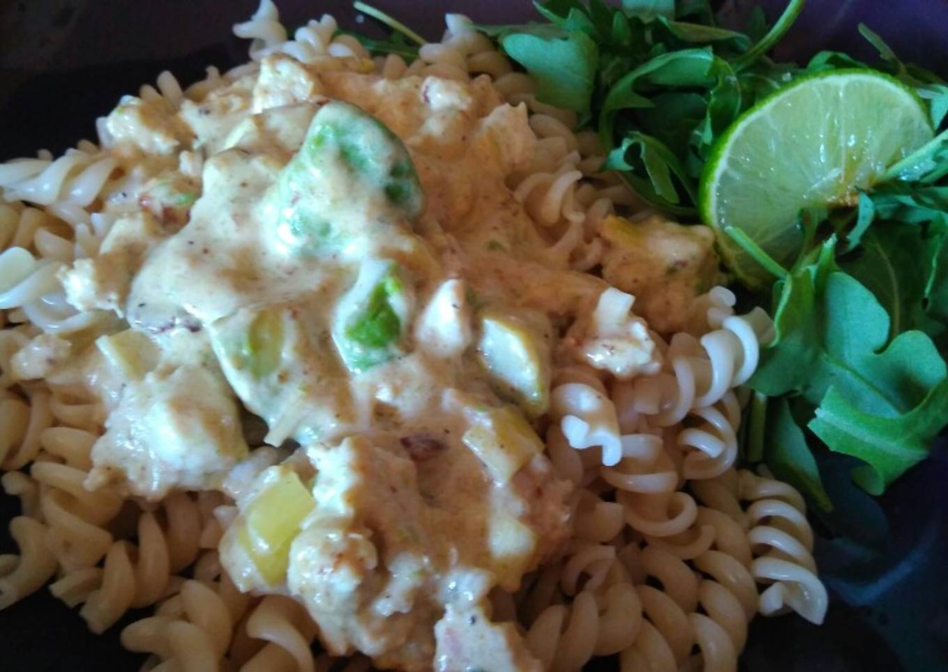 - Servir la rúcula, junto a los espirales y la salsa por encima, por último añadir un chorrito de zumo de lima fresco y listo!