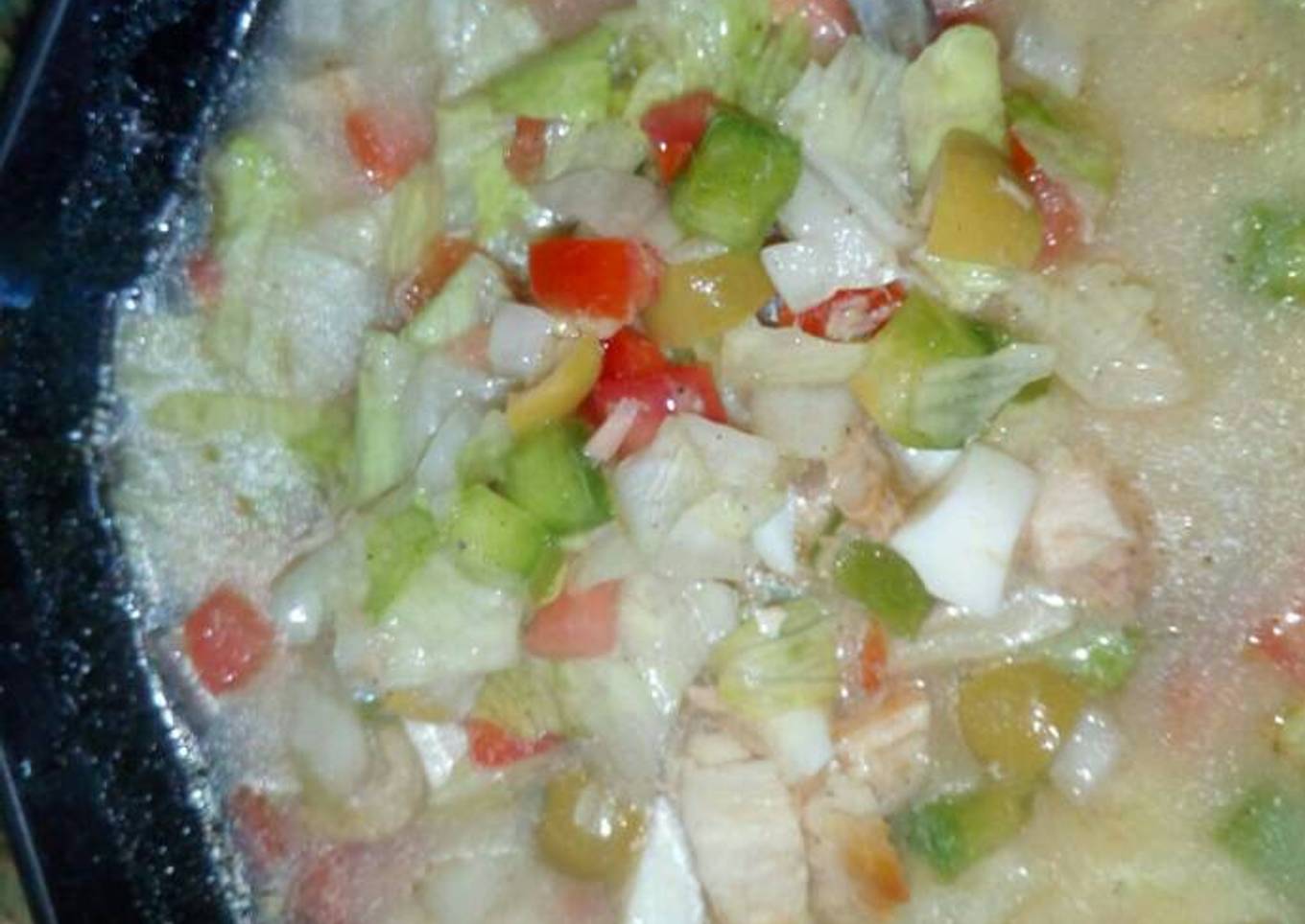- Cortar todos los ingredientes en trociiitos pequeñitos y añadirlos en un recipiente grande u olla