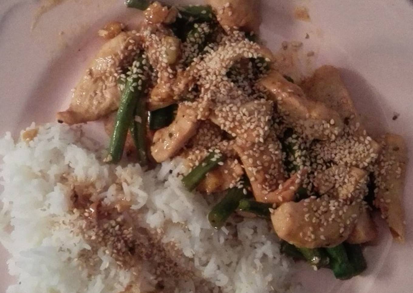 Pollo con Sésamo y judías verdes