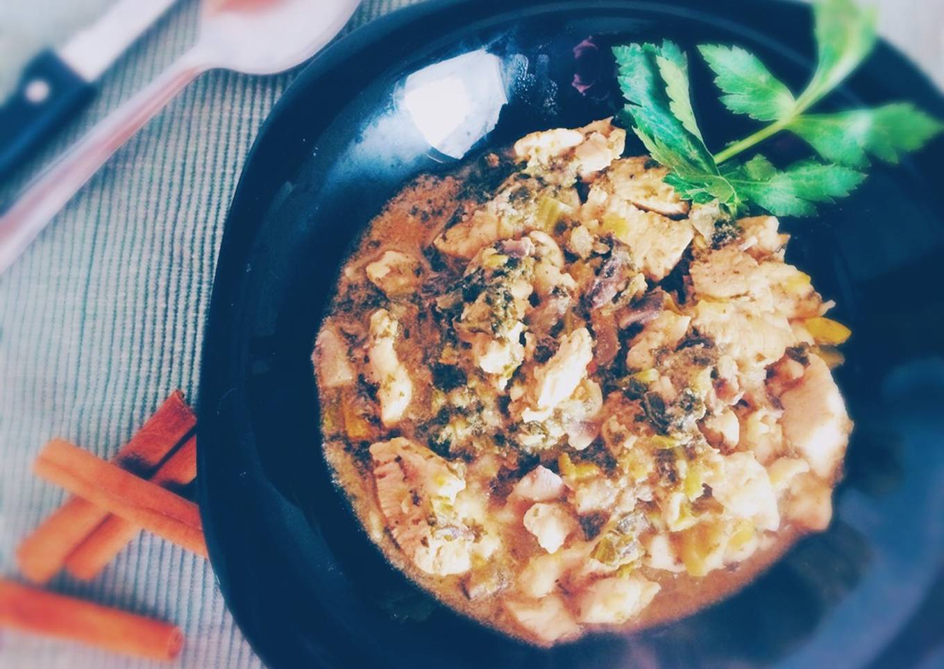 Pollo con salsa de col kale al toque de canela (apto para diabéticos)