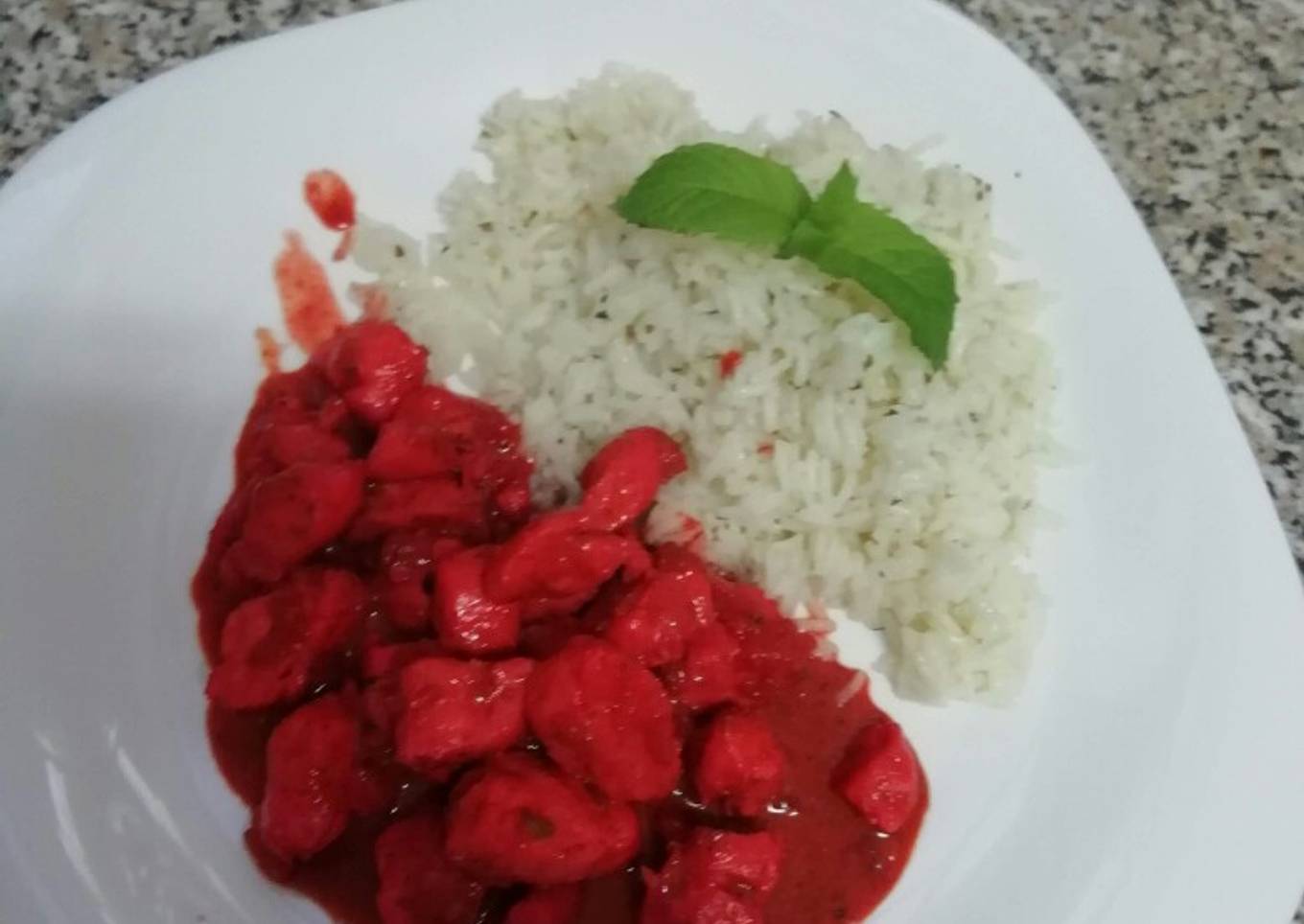 - Lo dejaremos a fuego. Lento unos 1o minutos listo a disfrutar yo lo suelo acompañar con arroz basmati con un poco de cilantro muy picadito mezclado con hierbabuena, ya puestos hacemos honor al plato con ese tipo de arroz que todos conocemos su origen