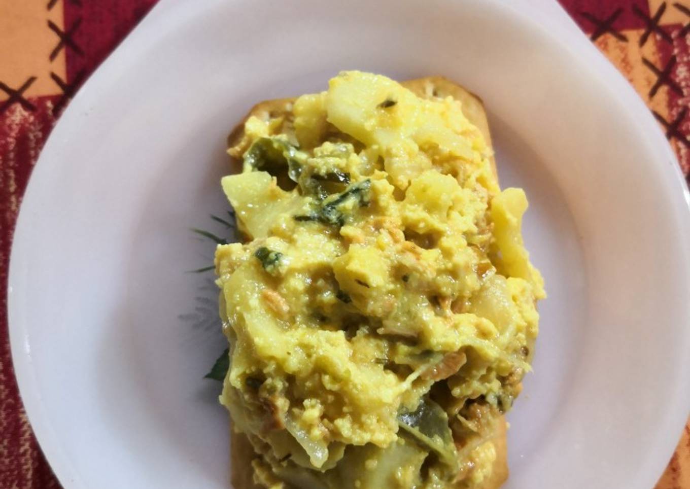 - En los platos en los que se vaya a servir se ponen un par de galletitas tipo cracket y encima de las mismas se sirve el revuelto. Listo para comer!! Te sorprenderá el sabor si te animas a hacerlo!!!!